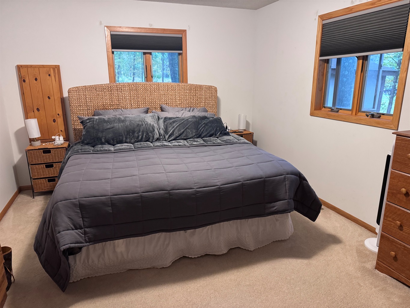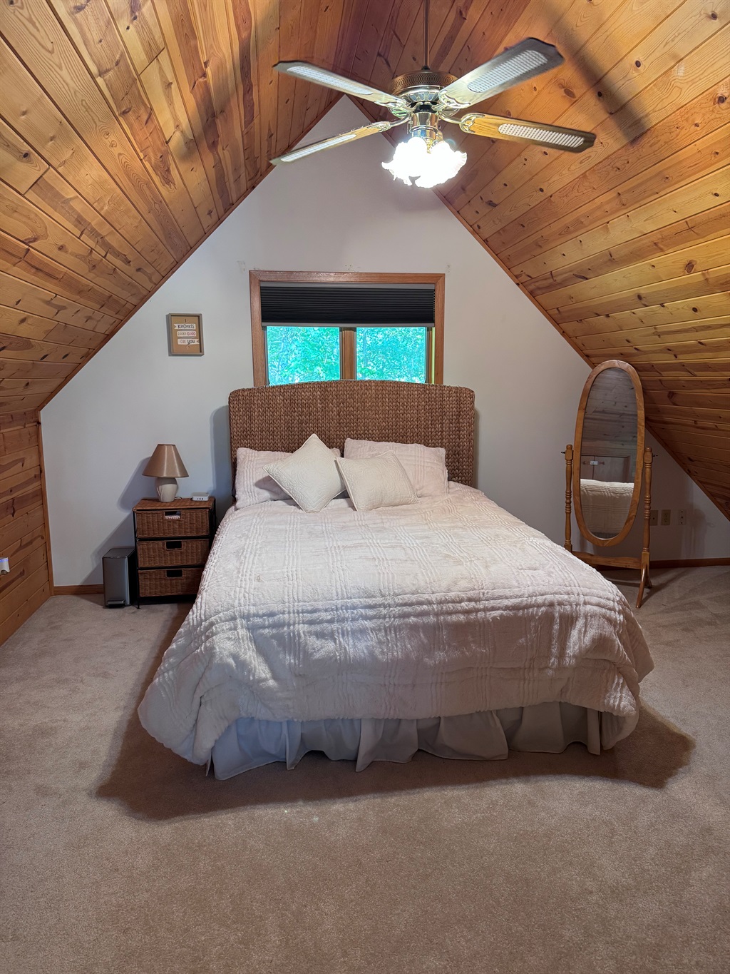 2 Bedrooms • 1 Bathroom 1 Bath • Sleeps 3-8Welcome to Spooner Shores, a lakefront haven tucked into the woods of Northwest Wisconsin. This charming cabin offers direct lake access with a private dock—perfect for swimming, fishing, or launching your kayak into the morning mist.