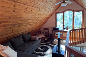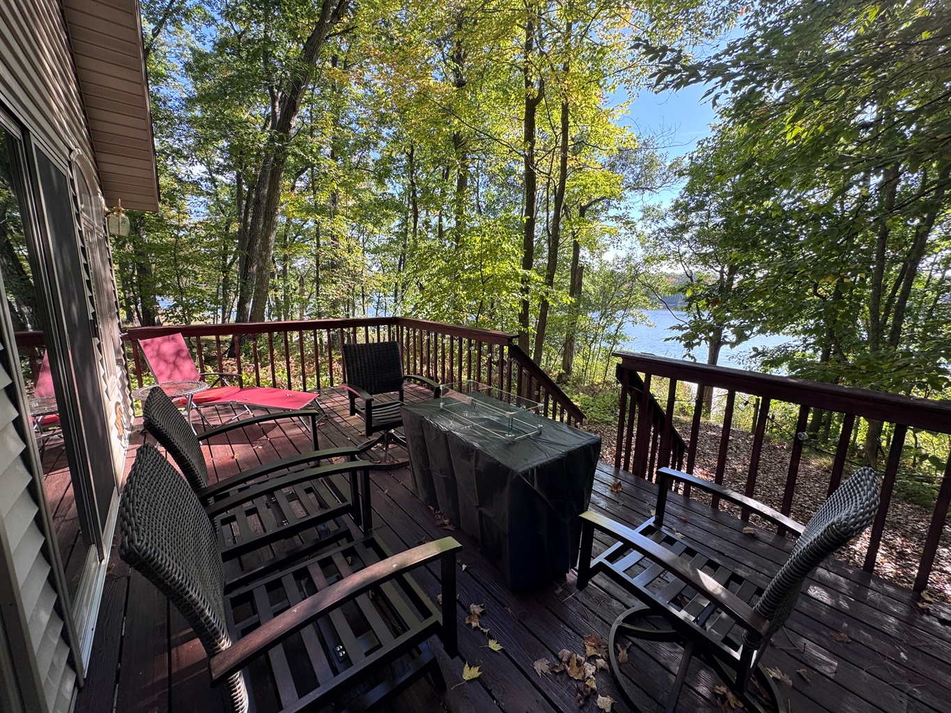 Inside, guests will find a cozy stone fireplace that anchors the living space, ideal for chilly evenings or fireside storytelling. A four-season porch invites you to sip coffee while watching wildlife year-round, and the large deck provides ample space for grilling, stargazing, or gathering with friends and family.
